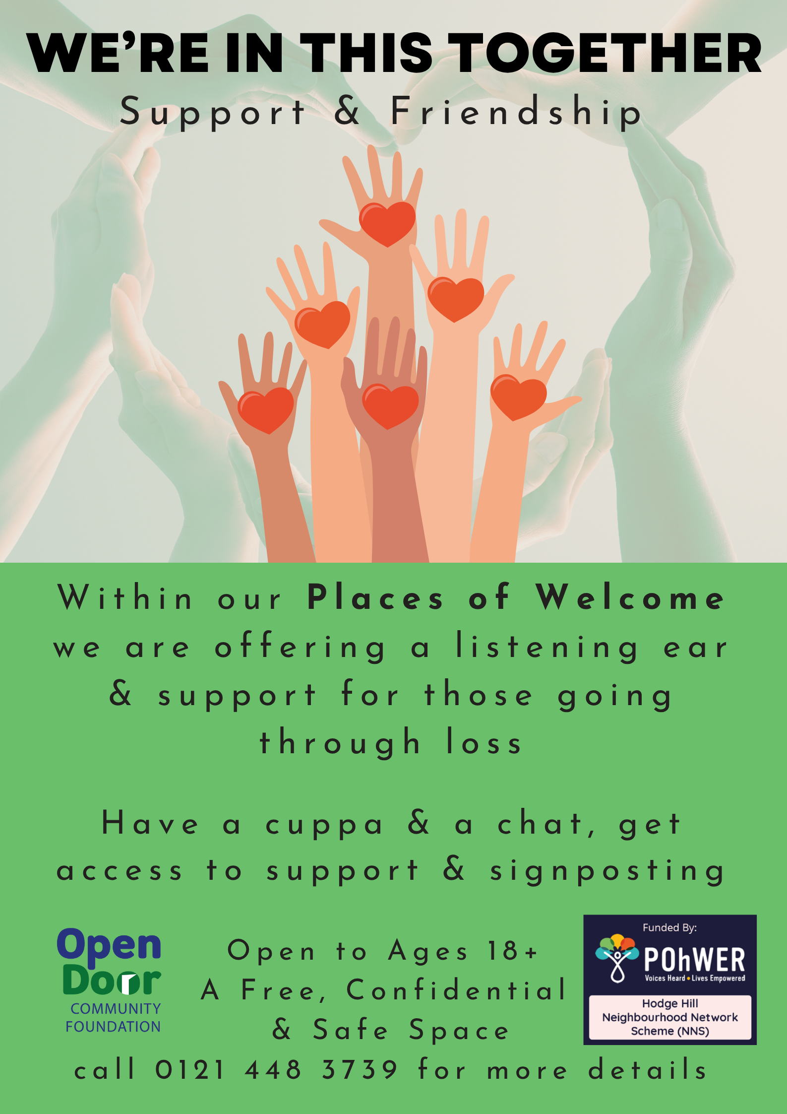 Have a cuppa & a chat, get access to support & signposting